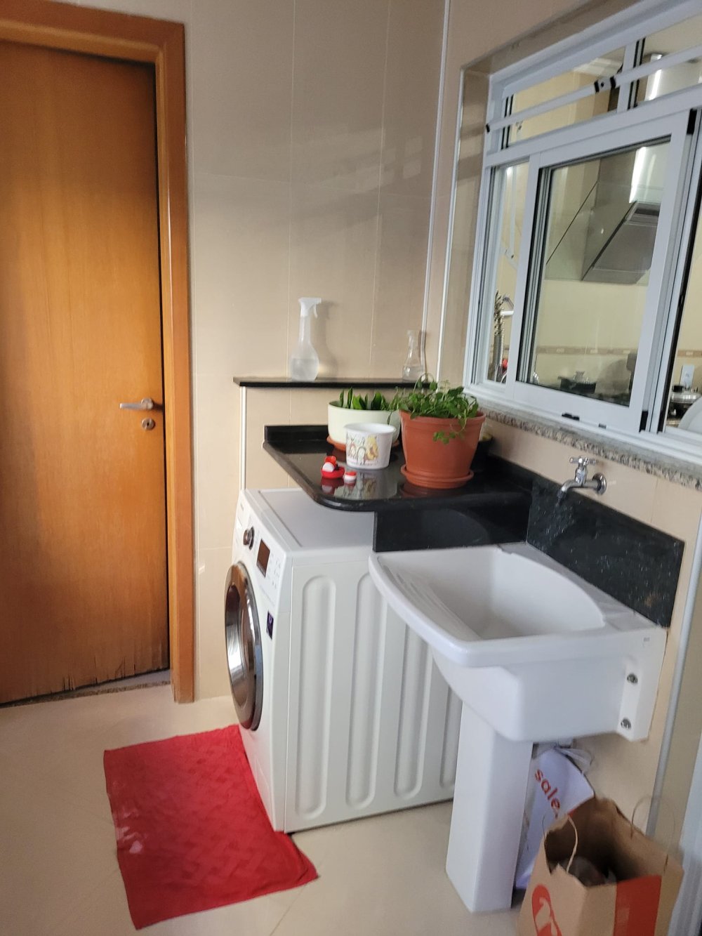 Lavanderia com banheiro: Uma área completa para cuidar da roupa da família com praticidade.