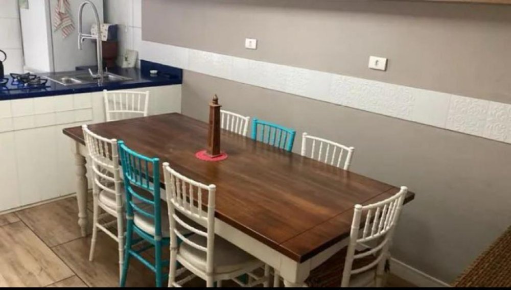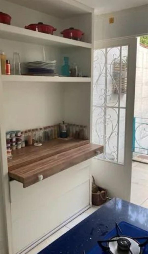 - 2 banheiros: 1 banheiro social no andar de cima e lavabo embaixo