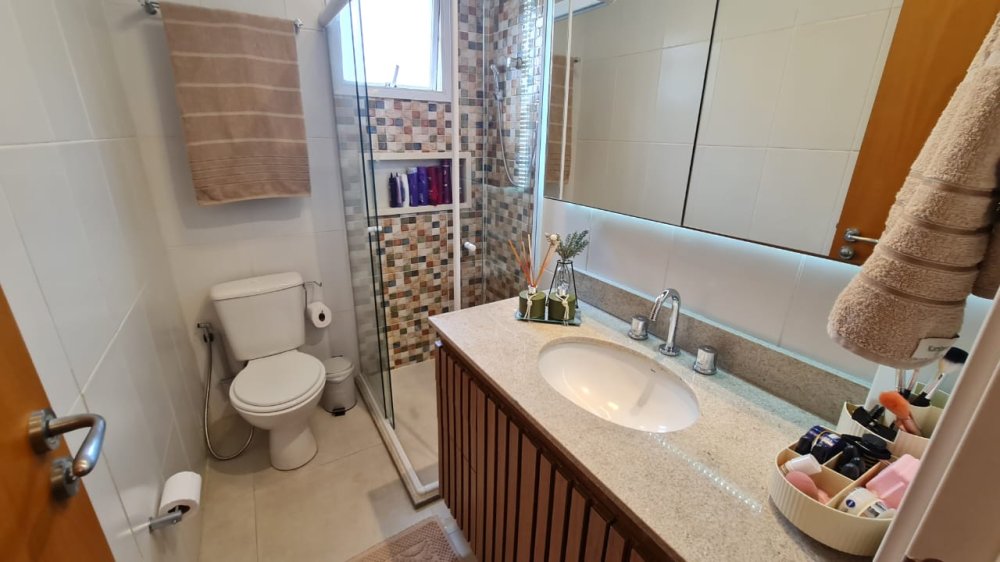 Desfrute de 3 dormitórios bem iluminados, incluindo uma suíte luxuosa, perfeita para relaxar após um longo dia. Com 2 banheiros bem equipados e 2 vagas de garagem para sua conveniência, este apartamento foi projetado para atender às suas necessidades mais exigentes.